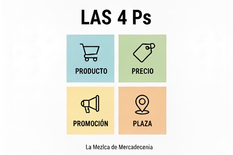 Para tener un plan de marketing exitoso, debes dominar cuatro elementos interconectados, conocidos como el "Marketing Mix" o las 4 P's. Este concepto fue popularizado por E. Jerome McCarthy a principios de los años 60.