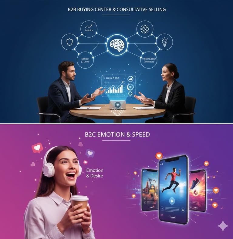 En B2C, la mayoría de las decisiones de compra están guiadas por la emoción, el placer, el deseo o la identidad. La lógica viene después, a justificar la compra.